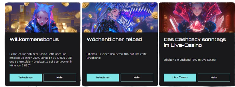 Neulinge werden nicht außen vor gelassen, denn das Willkommensangebot von BetRunner ist so verlockend wie es nur sein kann. Das Angebot der Plattform ist so gestaltet, dass es sowohl Neulinge als auch die erfahrensten Spieler anspricht.